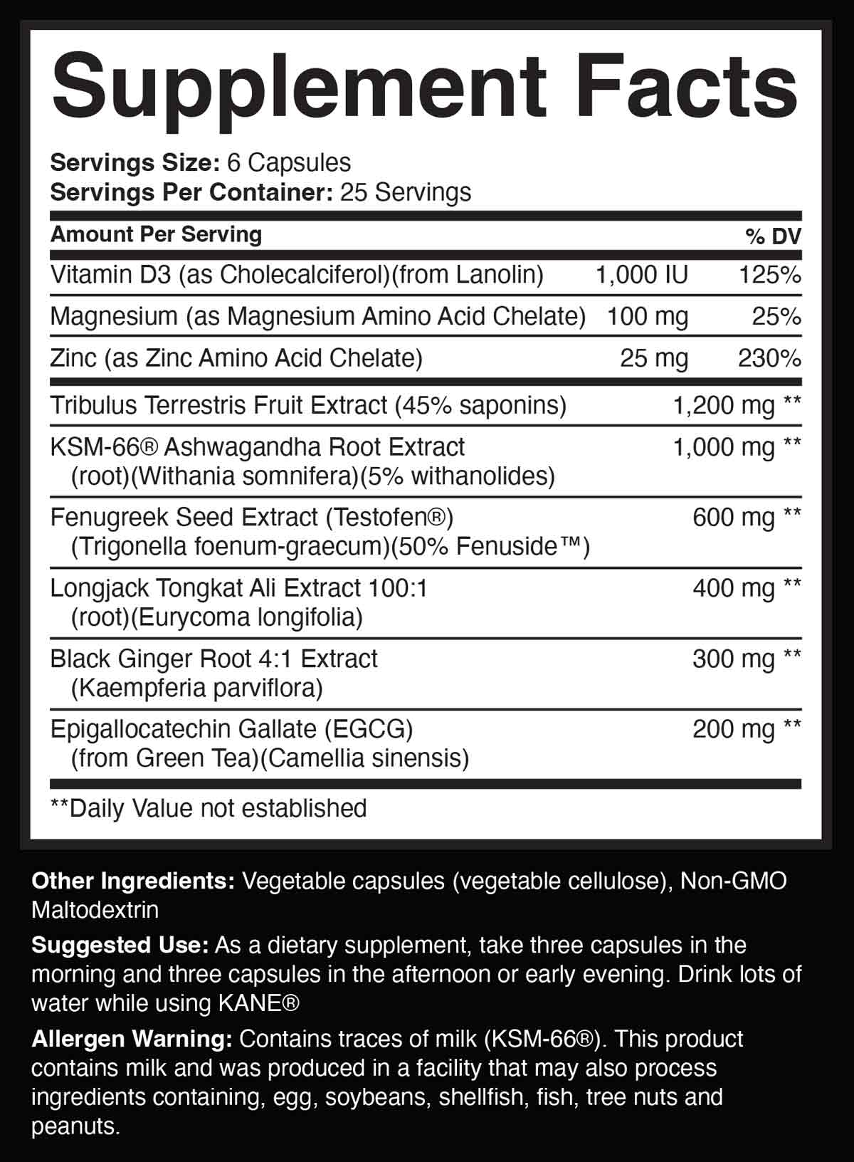 No expense was spared. It's not just about what is in the product, but how much. Our product label is 100% open, as no product on the market is even comparable to KANE® in terms of active-ingredient dosing.